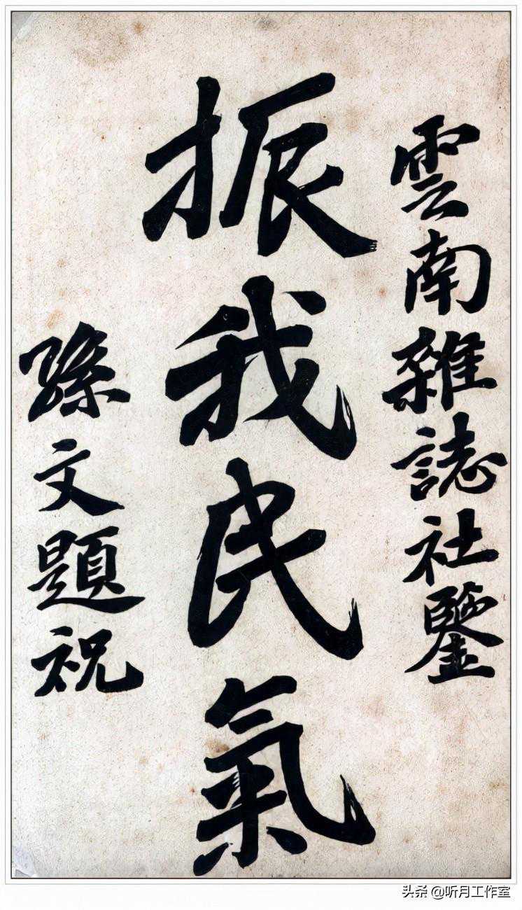 孙中山《行书为云南杂志题词》振我民气,1913年孙中山为《云南》题词。生平未尝临池学书,而笔笔端重,胎息深厚,无潦草从事者。
