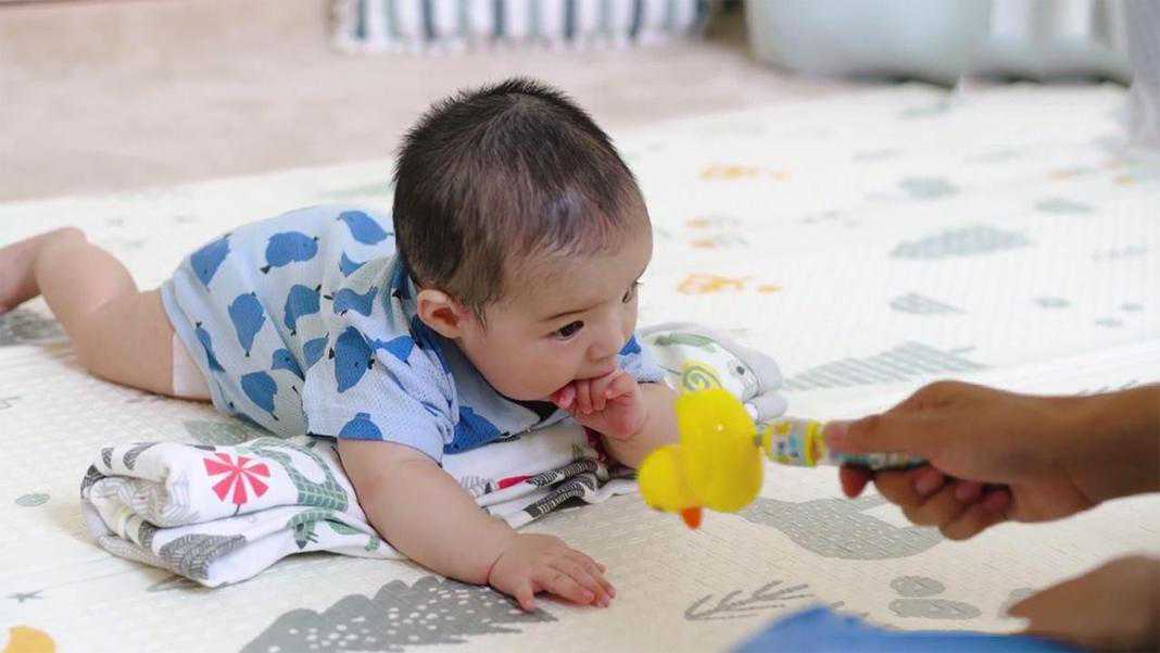 家长会发现到了这个月龄,宝宝想要翻身了,甚至已经会从仰卧到侧卧翻身了,而家长也要在这个过程中帮宝宝多做锻炼。