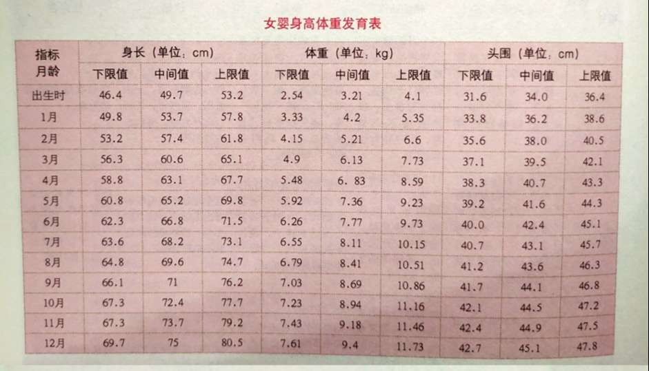 女宝宝各项指标的正常范围: