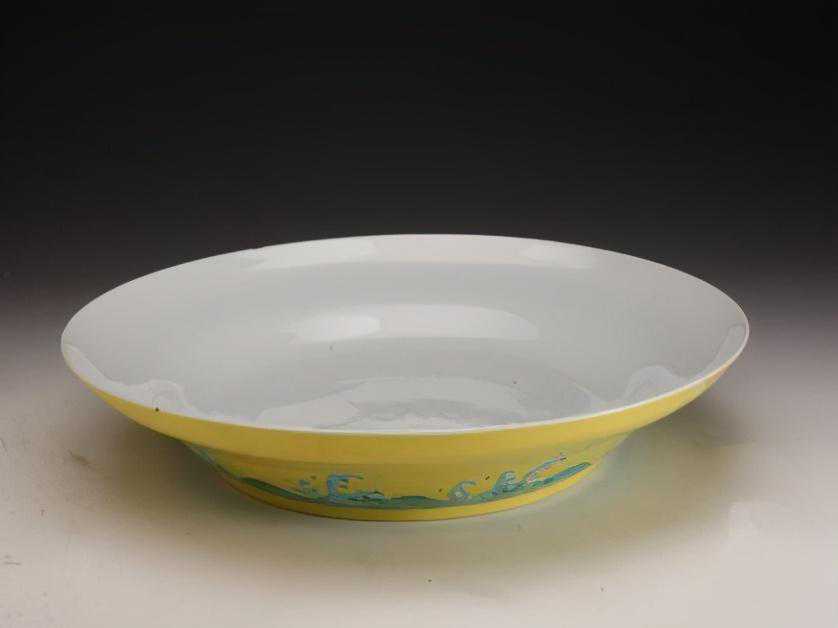 清雍正黄釉绿彩海水纹大盘