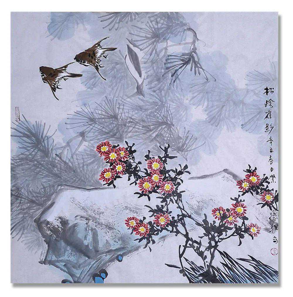 2020年作品《松荫雀影》受邀参加《承古开今》当代中国画名家四条屏作品观摩研究展。