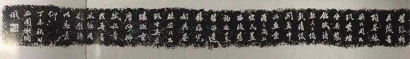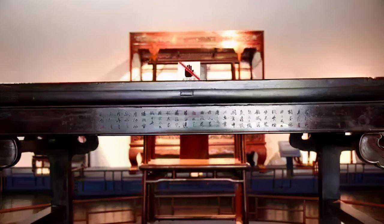 幸运的是,这块珍贵的紫檀案子在兜兜转转之间被卖到了北京,然后得以被清宗室溥侗收藏。溥侗是识货的,拿到这块案子后他就在案上镌刻了题识,以说明其来历,铭文刻于1907年,全文共96字。