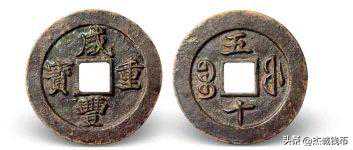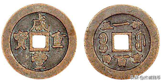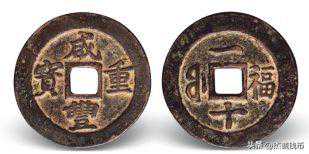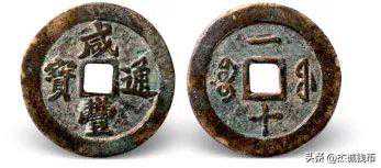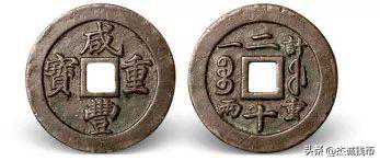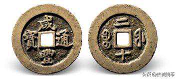 宝福局咸丰小平钱也称“通宝”,而大钱分别有“通宝”和“重宝”两大系列,且有多种套钱存在。通宝系列只有当十、当二十、当五十、当百四种面值。