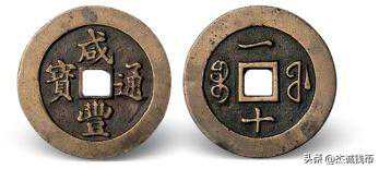 在通宝大钱系列中,面文带“大清”国号的宝福“一十”,为试铸样钱,是咸丰钱中的大名誉品。
