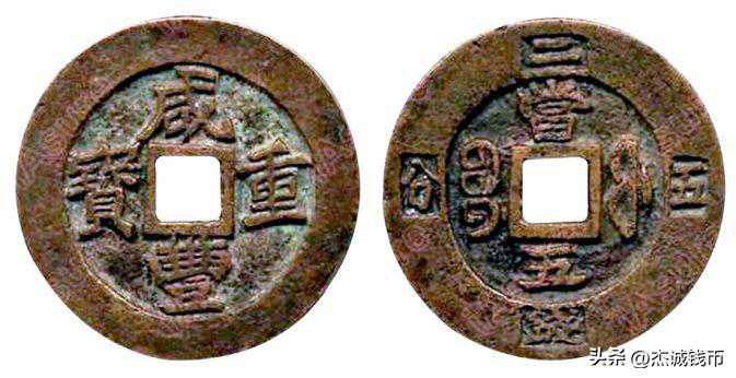 重宝背文“五文·三钱八分”“当一十文·七钱五分”“当二十文·一两五钱”三种大钱,为试铸样钱,存世均仅有数枚,且以“当二十文”者最为难得。