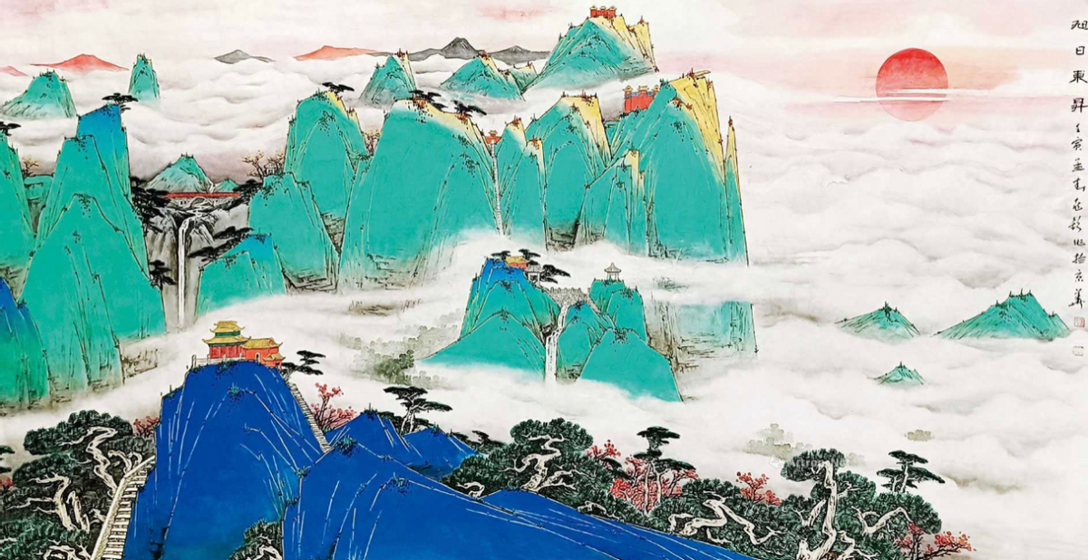 宋兆钦的青绿山水在当代画坛是首屈一指的,曾有人这样评价宋兆钦,说他是胸有丘壑,腹有山河。青山绿水、祖国山河都在他的胸中,不仅如此,宋兆钦也在不断创新,在描绘山水时候,把现代的立方体的构成因素融入其中,展现了新的绘画形式。