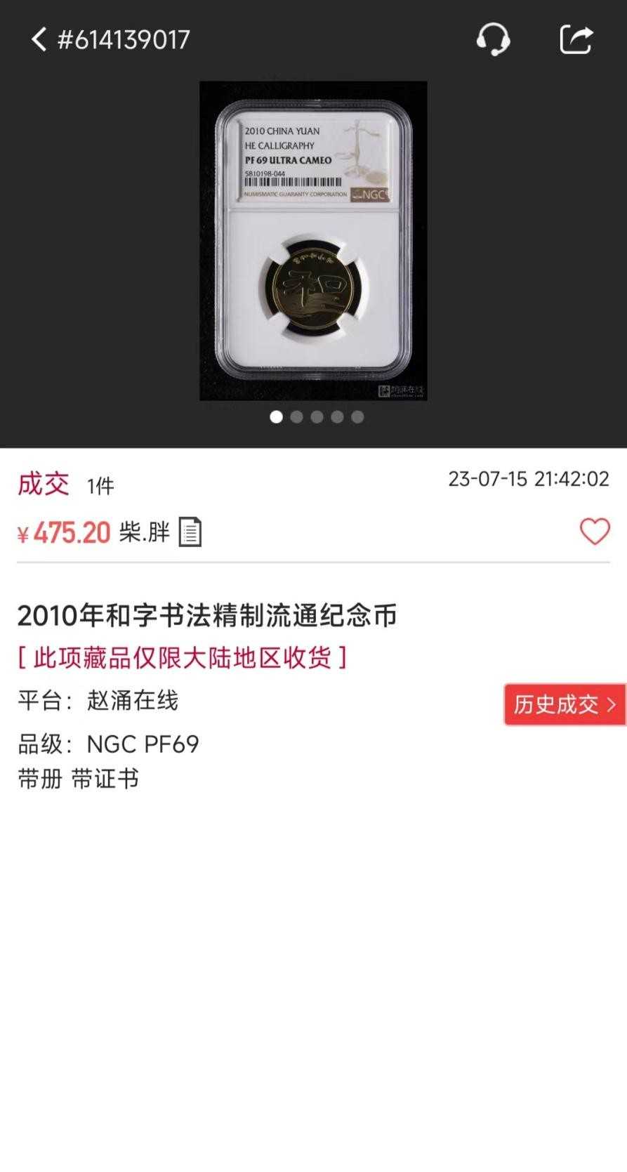 即使,拥有国粹的文化加持,即使精美异常,由于,前期电子盘的大规模炒作,这枚精制高位回落以后,一直没有很好的表现!