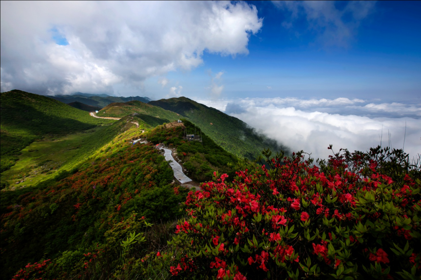 大围山,作为湘东地区的一颗璀璨绿宝石,不仅是长沙的重要生态屏障,更是浏阳响亮的文旅招牌。这里的野生杜鹃花群落规模冠绝华中,每到四五月间,漫山遍野的杜鹃花竞相开放,仿佛人间仙境,吸引着八方来客。如今,大围山凭借其丰富的自然资源和深厚的人文底蕴,荣获国家森林公园、国家地质公园、国家4A级旅游景区等一系列重量级荣誉,展现出强大的生态旅游发展潜力,成为众多旅行者亲近自然、畅游花海的理想目的地。