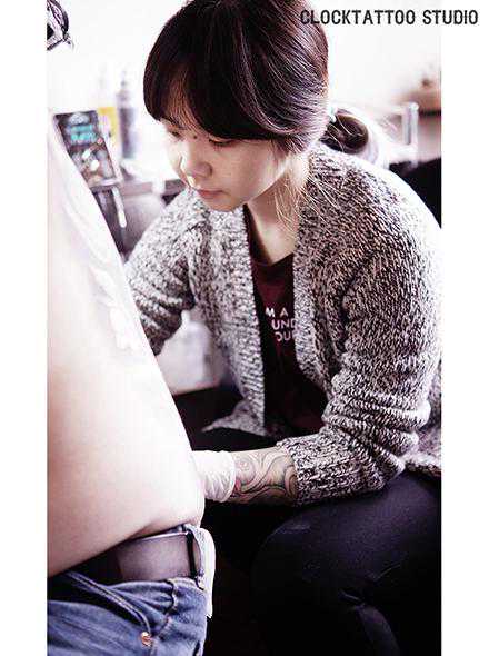 现工作于桂林钟刺青。曾经在2014年的中国tattoo绣纹身展中获得“黑灰素描”奖项。在2015年的廊坊国际纹身展中获得欧美“黑白大组”,“黑白小组”两枚奖项。对她而言,不断追寻纹身的艺术,将带给自己对生活全新的思考。艺术的路上永没有尽头和顶峰,只有不断前行,才会在反思中获得蜕变和精进,并从中获得快乐。
