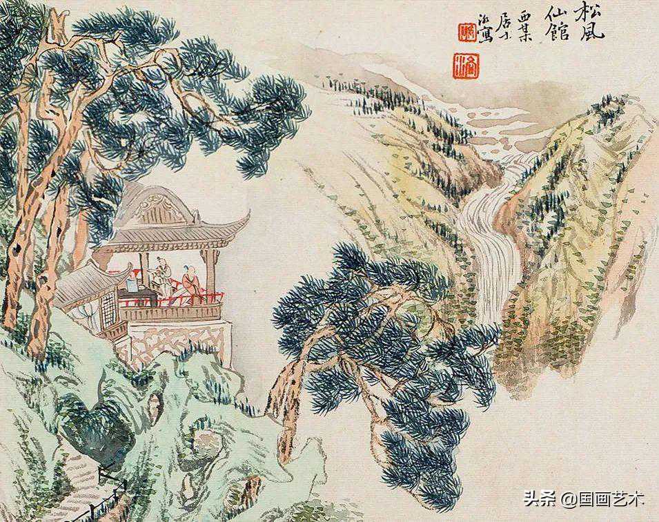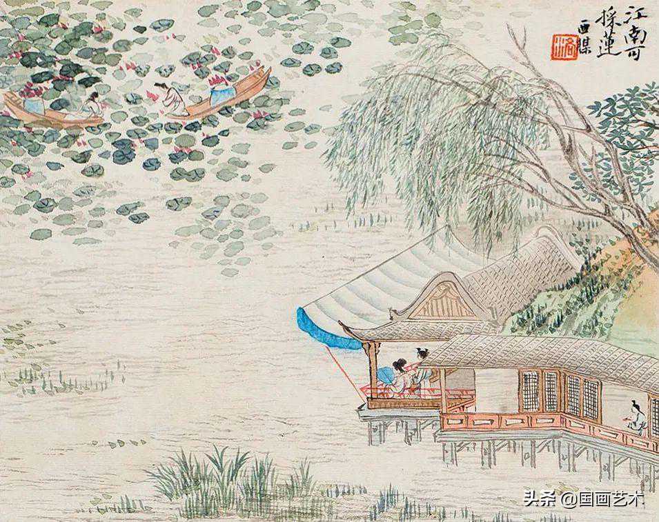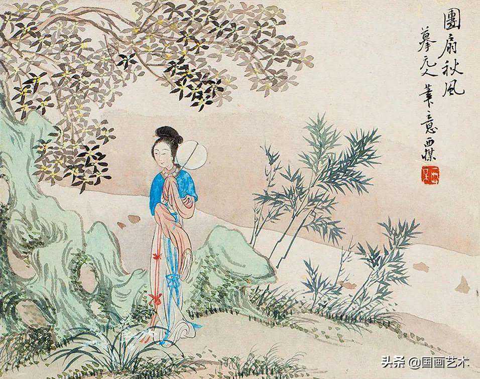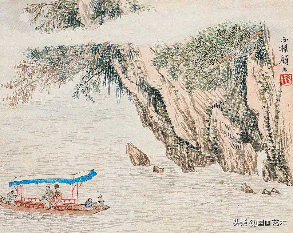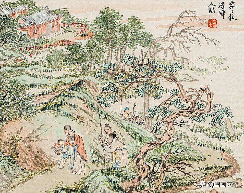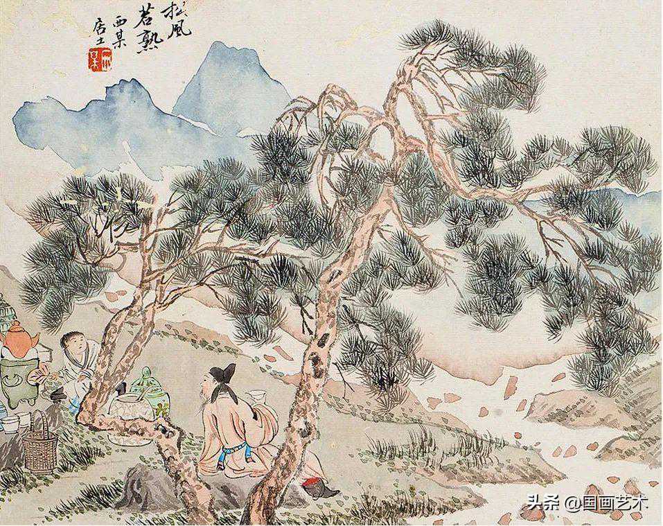 《人物故事册》,清代,顾洛,纸本设色,共计十二幅,每幅尺寸纵17厘米,横22厘米,约0.3平尺。