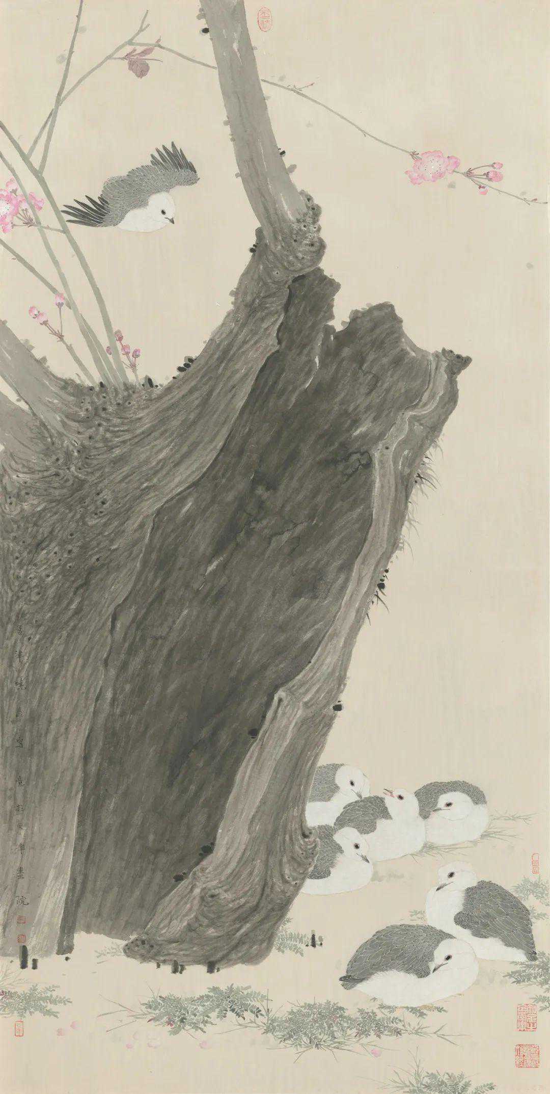 北洋女子师范学堂成为中国早期开办美术教育的院校之一,教员苏吉亨、李鹤筹均为著名的花鸟画家,可见花鸟画于此即已引入学院教育之中。自北洋女师,直至20世纪50年代河北师范学院美术系,再到1980年正式命名“天津美术学院”,中国画专业始终是这所学院的重要学术支撑。而以孙其峰先生为代表,由李鹤筹、张其翼、溥佐、萧朗等当代花鸟画大家,共同构建的花鸟画教学体系无疑是天美中国画最具特色的专业。天津美术学院花鸟画教学,体系完备、薪火相传,为天津乃至全国花鸟画坛连绵不断地输送花鸟画创作人才,对中国花鸟画的当代创作产生了深远的影响。天美之外,工艺美术学院穆仲芹、李昆璞,文人画家梁崎,也均以其独特的花鸟画风,艺海传灯,惠及后学。在新的历史时期,天津花鸟画既成就了如霍春阳、韩文来、贾宝珉、阮克敏、郭书仁、史如源、王之海、刘文生、贾广健等诸多花鸟画大家、名家,尤为可喜者,在学院教学体系的培养下,天津青年花鸟画创作人才辈出,成就不凡,老、中、青几代人共同谱就了沽水之泮的无边春色。