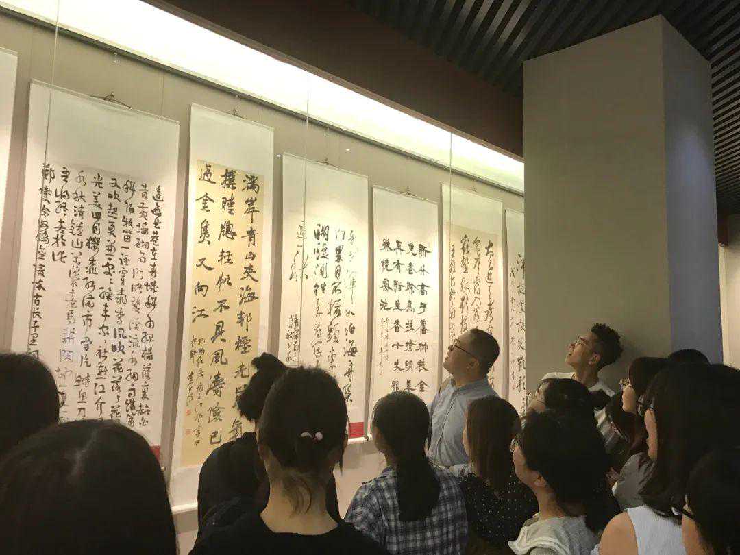 书画展的现场毋老师细赏书法作品