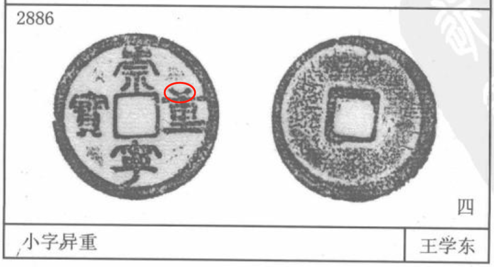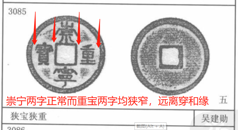 3085号——狭宝狭重。崇宁二字正常而重宝二字狭窄,明显与穿和外缘都不连结。另外还有一个系列的版本叫狭重,版本都很高。