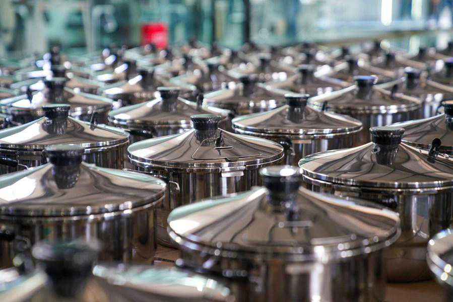 2022年11月28日,拉萨市一家工厂内拍摄的压力锅。新华社记者黄耀漫摄