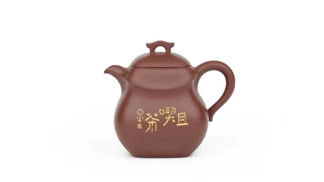 《福禄》设计为葫芦造型,壶嘴、壶身、壶把线条流畅,象征健康长寿延绵不绝,壶身上半部分与壶盖、嘴、把意象而成“长寿龟”。造型圆满浑然一体,独具一格。近年来,王亚平为杨涛的作品陶刻,阴刻阳琢之下,金石气息浓厚,充分展示了紫砂文化出于泥土而无尘、孕于流水而有骨的艺术造诣与品位。