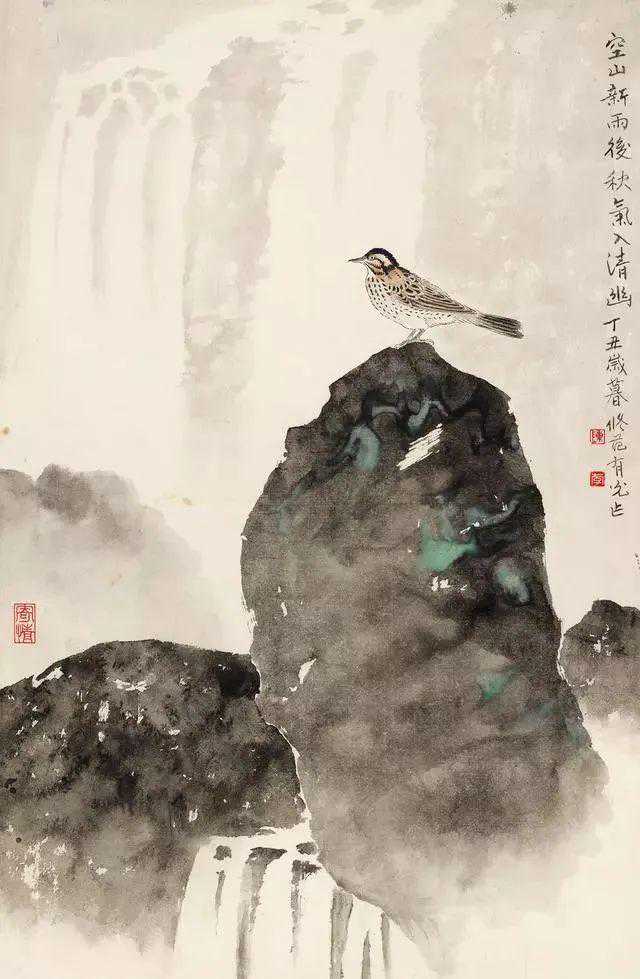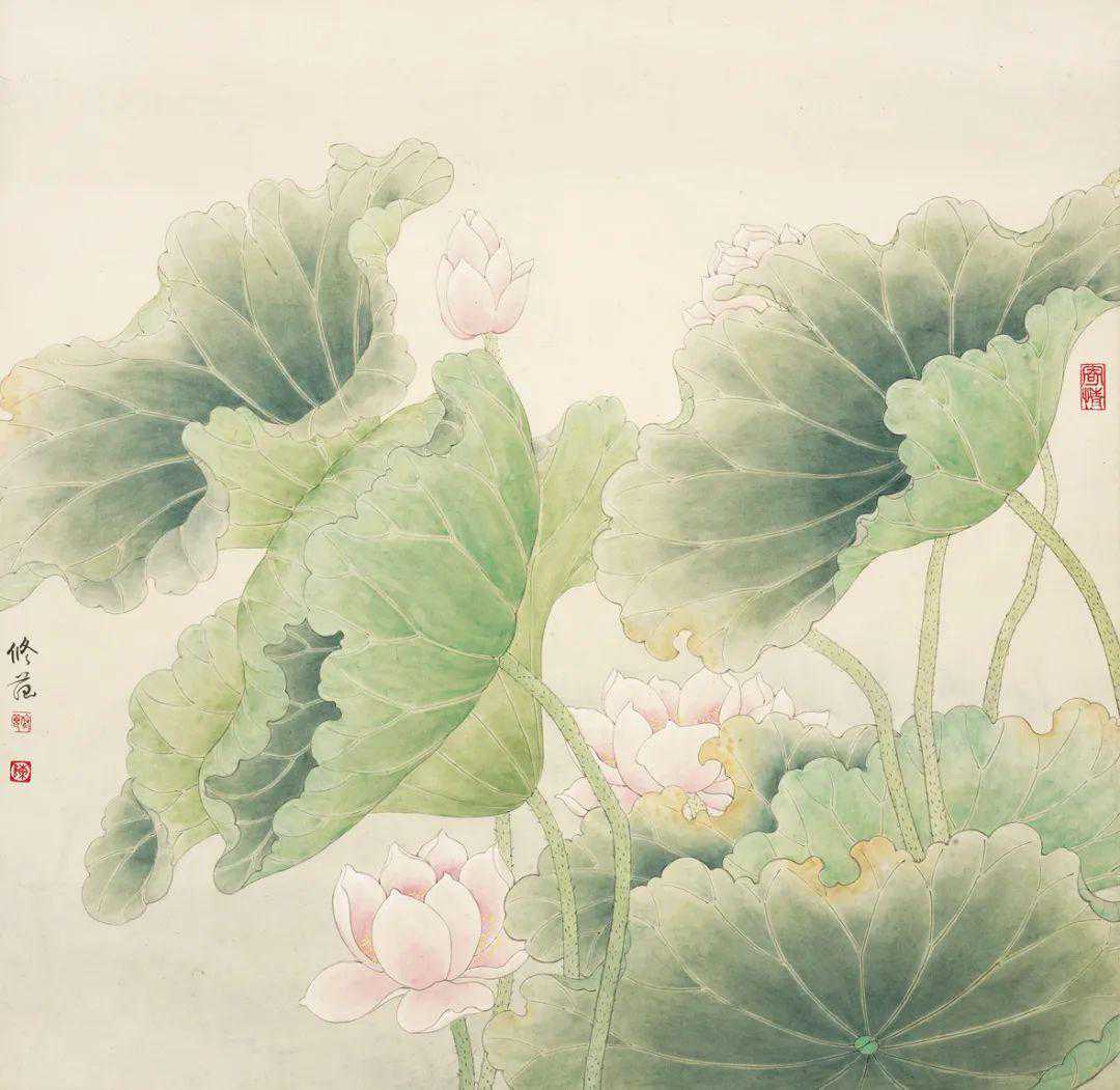 花鸟画的构图与设色,是表达花鸟画形式美的两个主要方面,也是体现作品意与情的重要手段。之佛教授对此非常重视。他对作品构图上形式法则的妥善处理考虑得非常慎重。