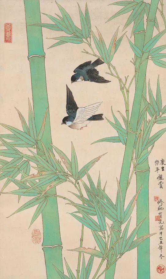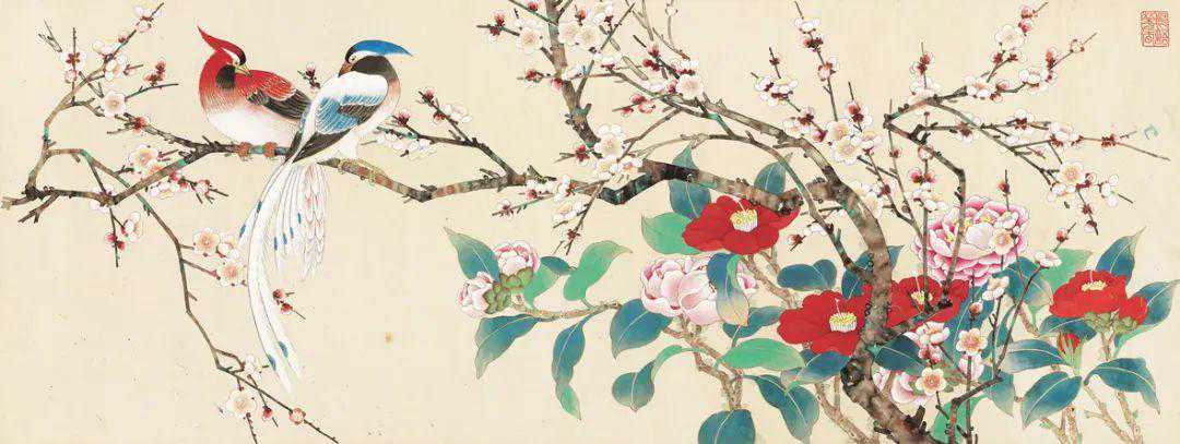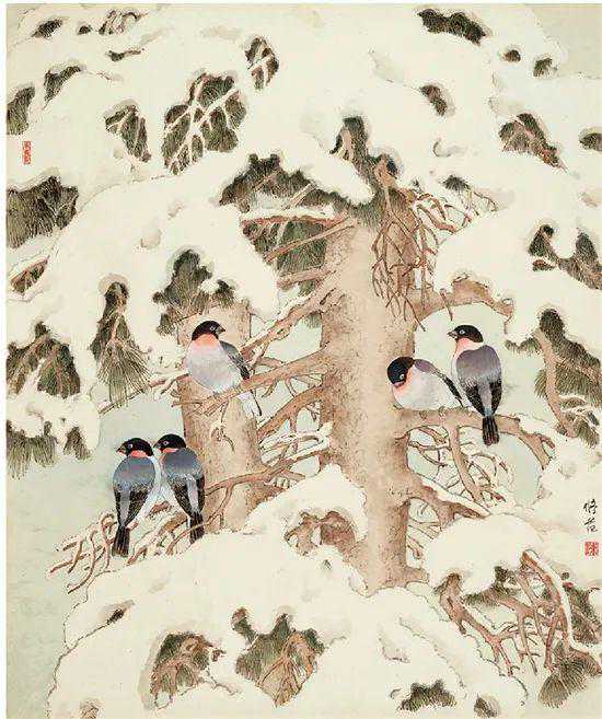 他的作品不仅继承了我国绘画的优良传统,取徐、黄与宋元诸家之长,更吸收了埃及、波斯、日本和西方艺术的长处,以及图案的装饰造型、色彩等表现手法,使他的作品不落窠臼,自辟蹊径,创造了自己清新、典雅的艺术风格。