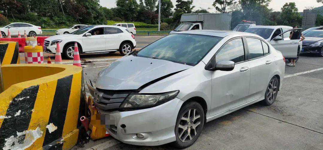 巨大的撞击声,立即引起收费站内工作人员及对向处理事故民警的警觉,大家立即上前查看驾驶员情况,万幸的是,在安全带的保护下,未造成人员受伤。