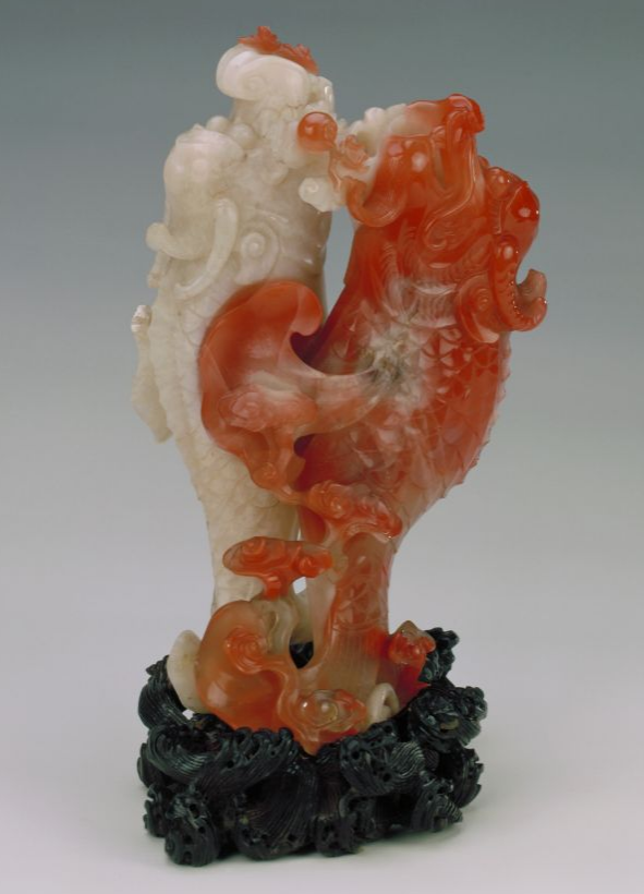 清红白玛瑙巧做双鱼龙花插(故宫博物院藏)