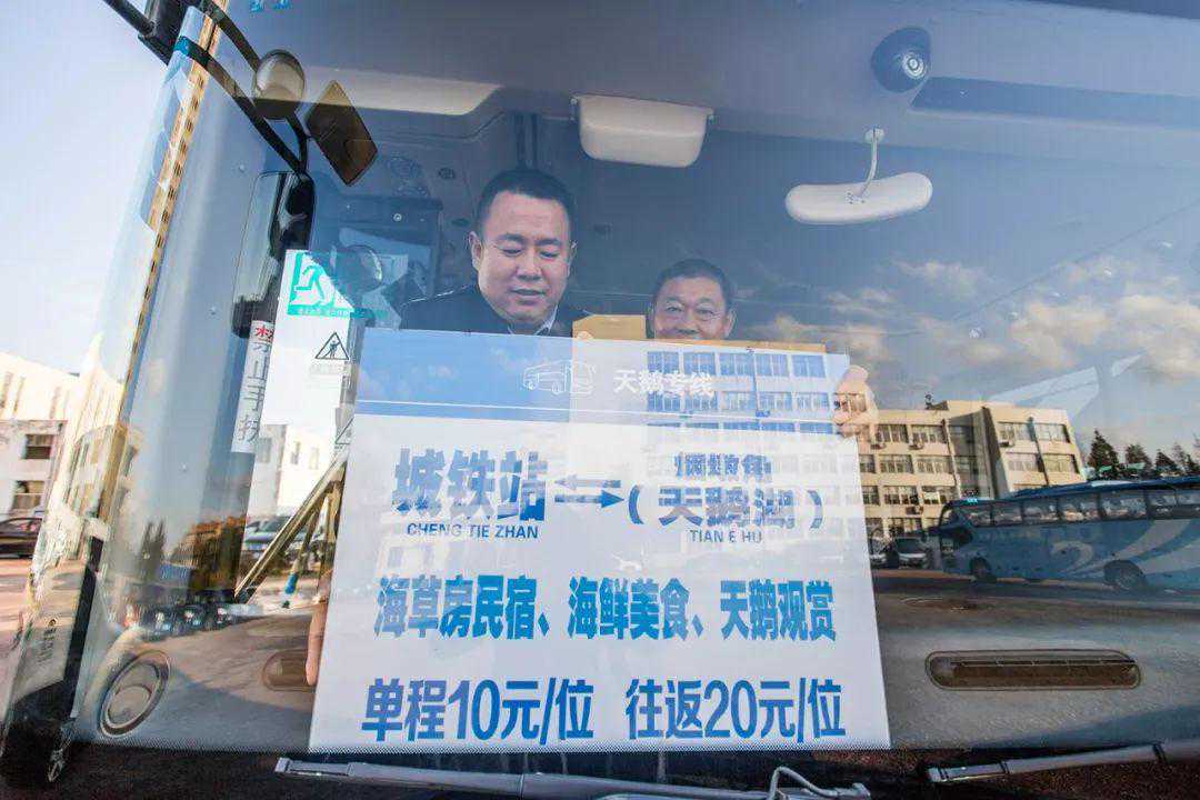 “赏天鹅”专线每周六、日早上9:45从城铁站发车,途经成山大道、爱伦湾海洋牧场、大庄许家、花斑彩石景区,终点为烟墩角天鹅村,下午15:30开始返程,16:40抵达城铁站。