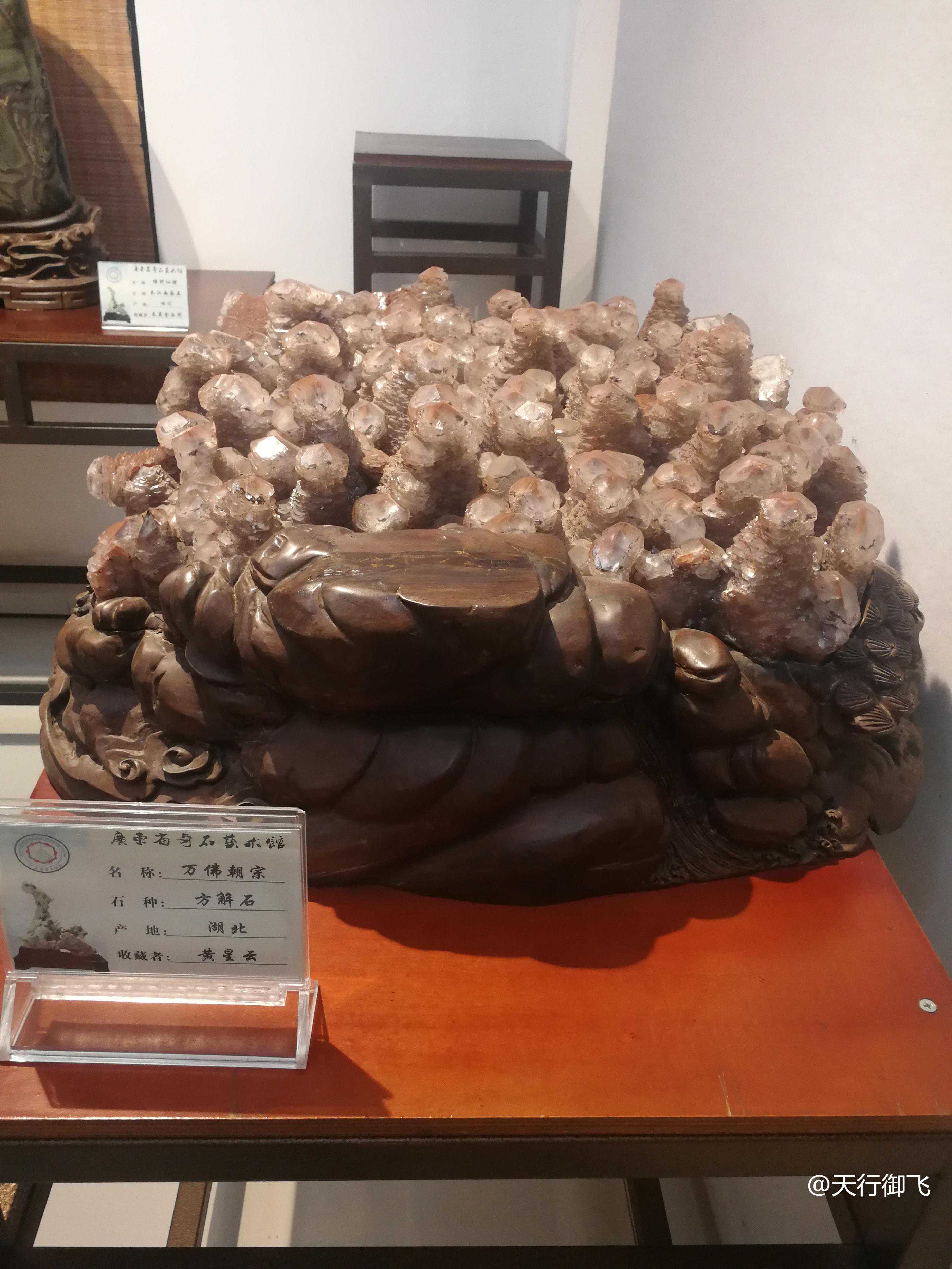 流花东苑艺博馆位于广州流花湖公园东堤,从2018年1月1日起,公园与广东省奇石协会在流花东苑合作建设自然博物馆地质展厅。地质展厅藏品品种多样,千姿百态,数量共计约四百件,品种达八十多种,可谓美在自然,妙在天成:既有那条纹古朴、苍劲有力的卷纹石,彷如初展雄风的巨狮,可谓形神兼备;也有直径近一米的夜明珠,璀璨夺目,世间稀有;更有那一块纯白色的大型方解石,形似一碗高高堆起的大米饭,粒粒米饭晶莹剔透,预示着仓廪丰足……在丰富展览藏品的数量和品种的基础上,地质展厅还配设文字和图片介绍,如丹霞山地形地貌介绍和地质构成知识等,相关地质知识介绍宣传介绍达二十多件。