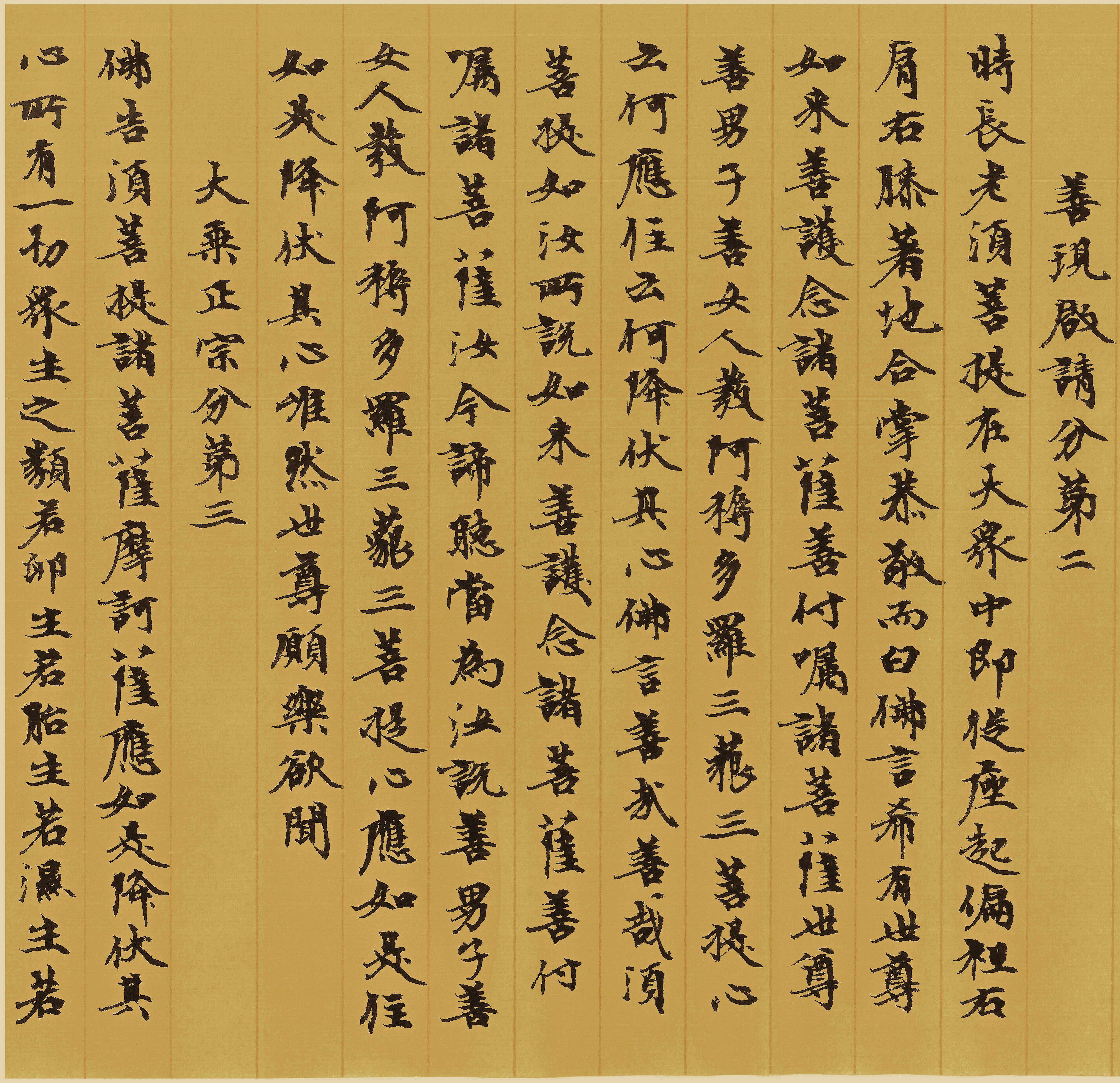若从后者讲:据我的了解,从柳公权算至清代康熙、雍正,中间有苏东坡、赵孟頫,董其昌、傅山等他们抄写的经卷(金刚经》却非常令人失望,虽然他们本人无一不是当时的书法大腕,但遗憾的是,他们有个共同点就是:把经当书法写了?我现在所呈现的,但愿能在这两端之间,无所偏倚,却有所灵化!