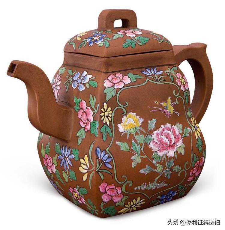 11,清雍正紫泥粉彩描金花鸟纹笠帽壶