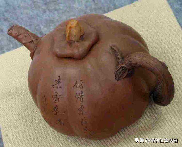 (陈鸣远制南瓜壶-通高10.5cm,口径3.3cm-南京博物院藏)
