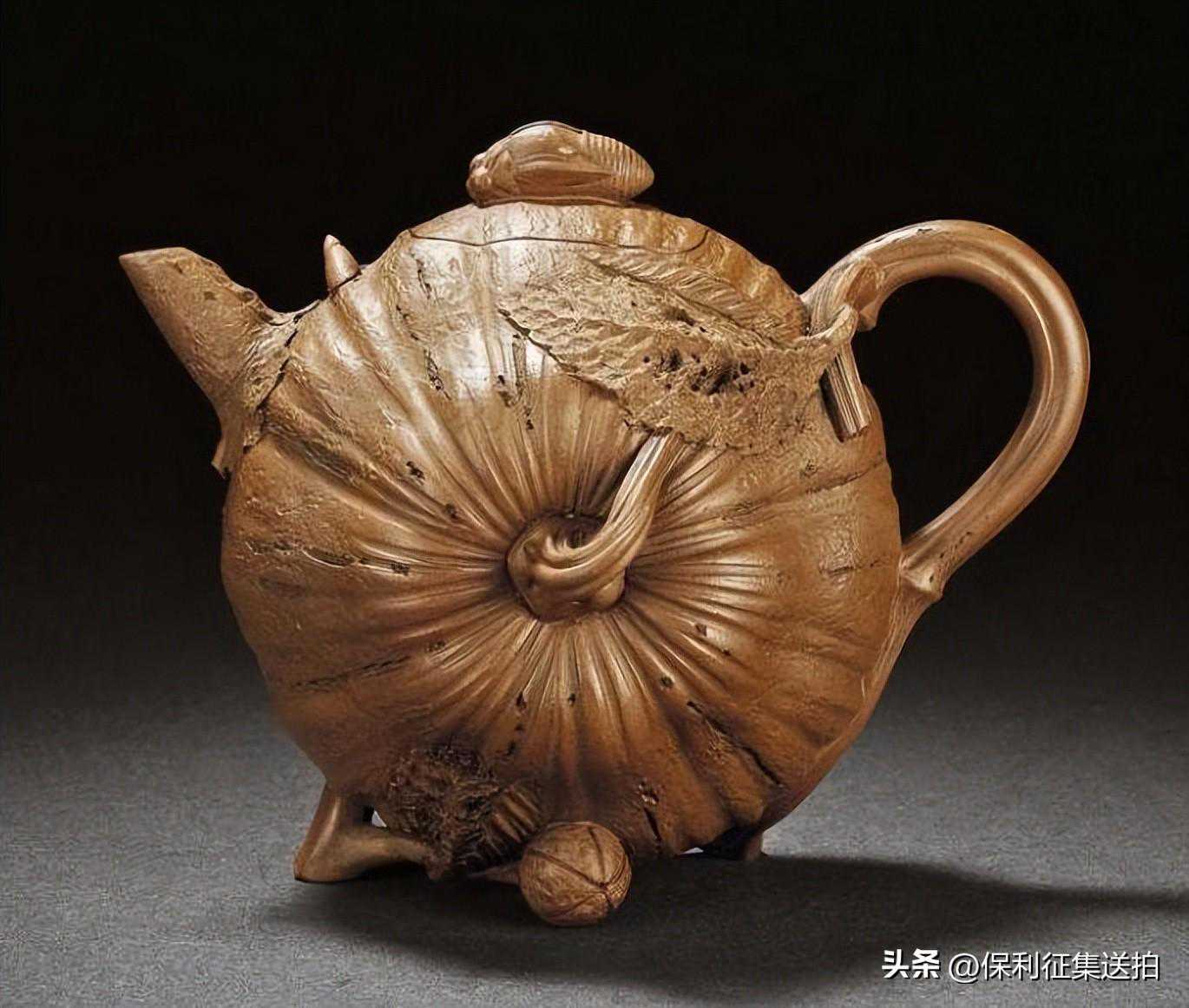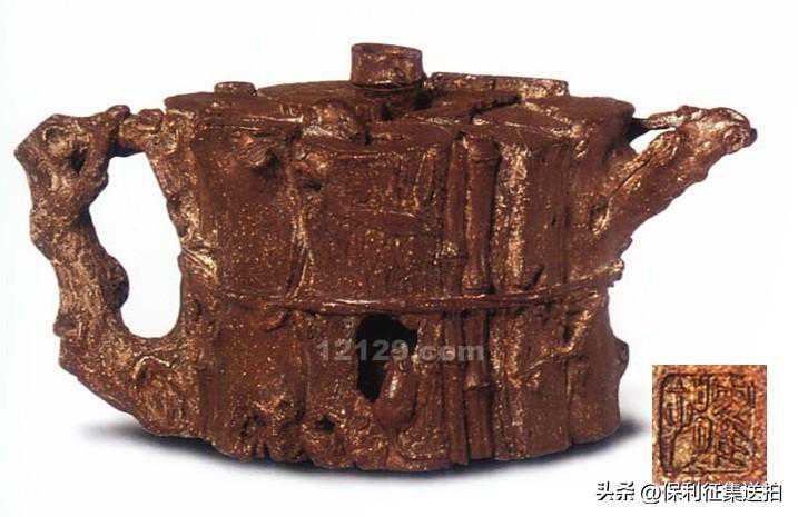 -高6.8厘米,长15.2厘米-壶底有“鸣远”行书刻款,“陈鸣远”篆书阳文方印。此壶现藏上海博物馆。