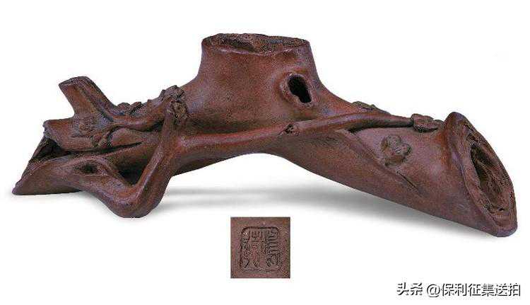 6,明末清初陈鸣远製紫砂梅枝笔架