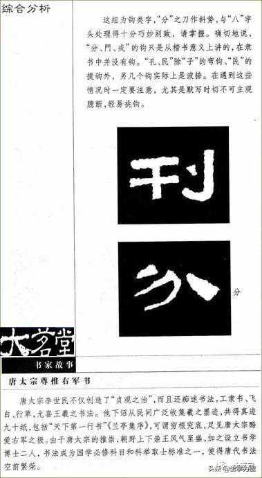 我们在实践中,不仅要注意点画的“黑”,同样应多观察被点画分割所形成的“白”。要使这些“白”呈现出不同的形态,不同的大小,以形成布白间的张力变化,使造就这些布白的点画具有强烈的动势,从而使整个字显得不呆板,富有生机。