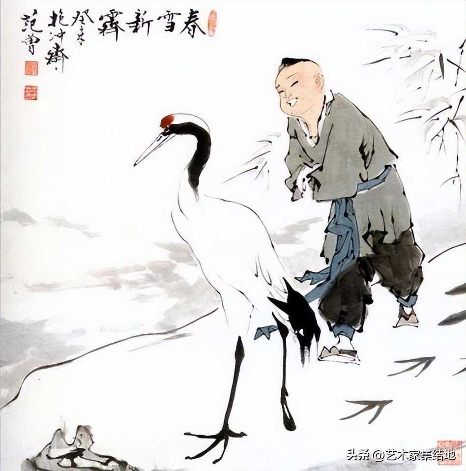 在范曾先生的作品中,人物画占据着重要的地位。他的人物画栩栩如生,神态各异,充满个性。他善于运用线条勾勒出人物的轮廓,再淡墨渲染,使人物形象鲜明、生动。在描绘人物服饰时,他注重纹理的勾勒,使衣纹具有动态感,显得飘逸自然。