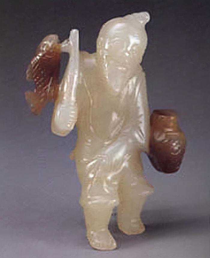 清代雕刻的人物佩也是多种多样的,人物形象有老翁、童子、仕女等,内容有太白醉酒、童子戏猫、童子逗狗、骑马打鼓及布袋和尚等,其人物有立式、蹲式和坐姿,形象生动,神态逼真,为历代所不及。