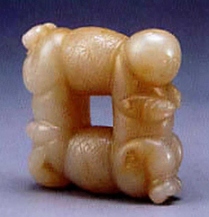 春秋战国时期,玉韘演变成扁平状的盾形环,丧失了实用的功能,变为人们佩戴的装饰品。