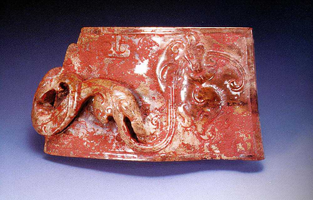 牌形玉佩品种很多,各种形状的都有,一般多呈长方形,稍厚,有些是直接可以佩带,有些却要嵌镶后才能佩带,此种玉牌多琢单面纹饰。