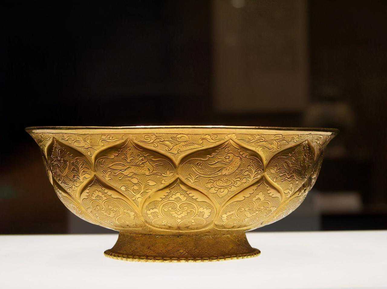 当然了,如此精致的金碗最后的用处更是不凡,因为它是皇室专用。根据《唐摭言》记载,唐文宗在赏赐大臣美酒时“命赐酒二盘,每盘贮十金碗,每碗各容一升许,宣令并碗赐之”。直接证明了金碗的用途,它可是唐朝皇帝的专用,大臣想要莲瓣纹金碗,必须得到皇上的御赐。