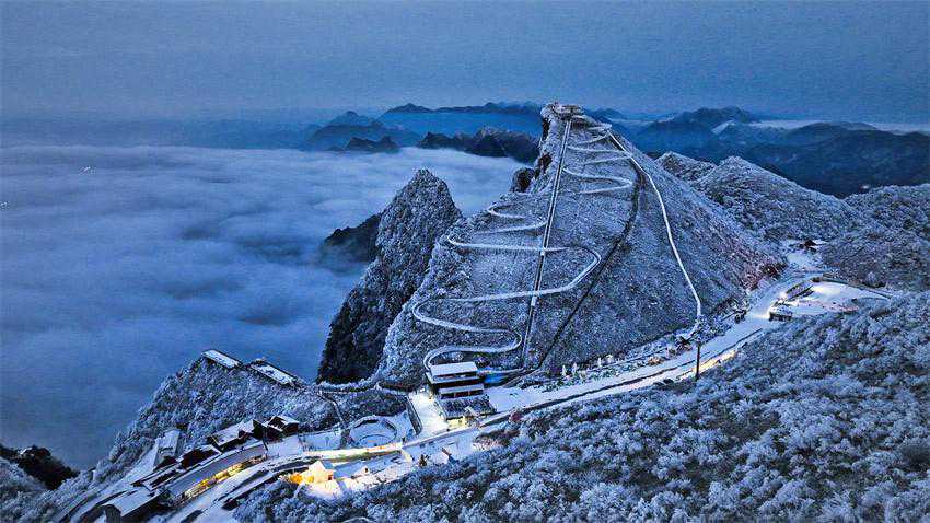2024年的第二场雪,让八台山变得更美。万山纵横、云雾缭绕,此刻云山不在画卷,流转在了眼前。(刘海天、马娟)