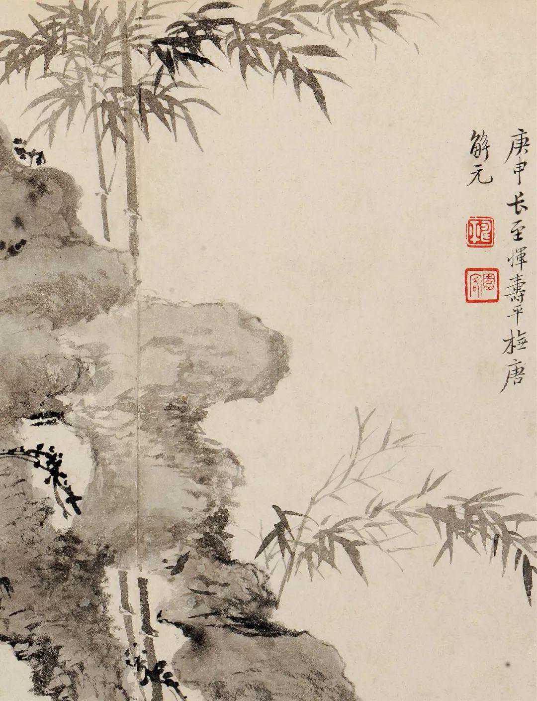 竹子在恽寿平的作品中相对少见,这开写的是风竹,竹葉飄灑,與鳳凰梳理羽毛之狀,頗為相似。所以恽寿平題“青鳳梳翎”。他一定是对竹带着感情,才会想到这样的比喻。