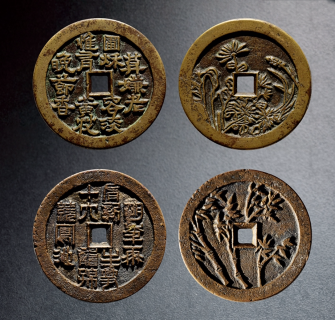 拍品简述:清•川炉竹菊大型花钱一对,四君子套花钱大样更为少见。直径:54.3-55.4mm