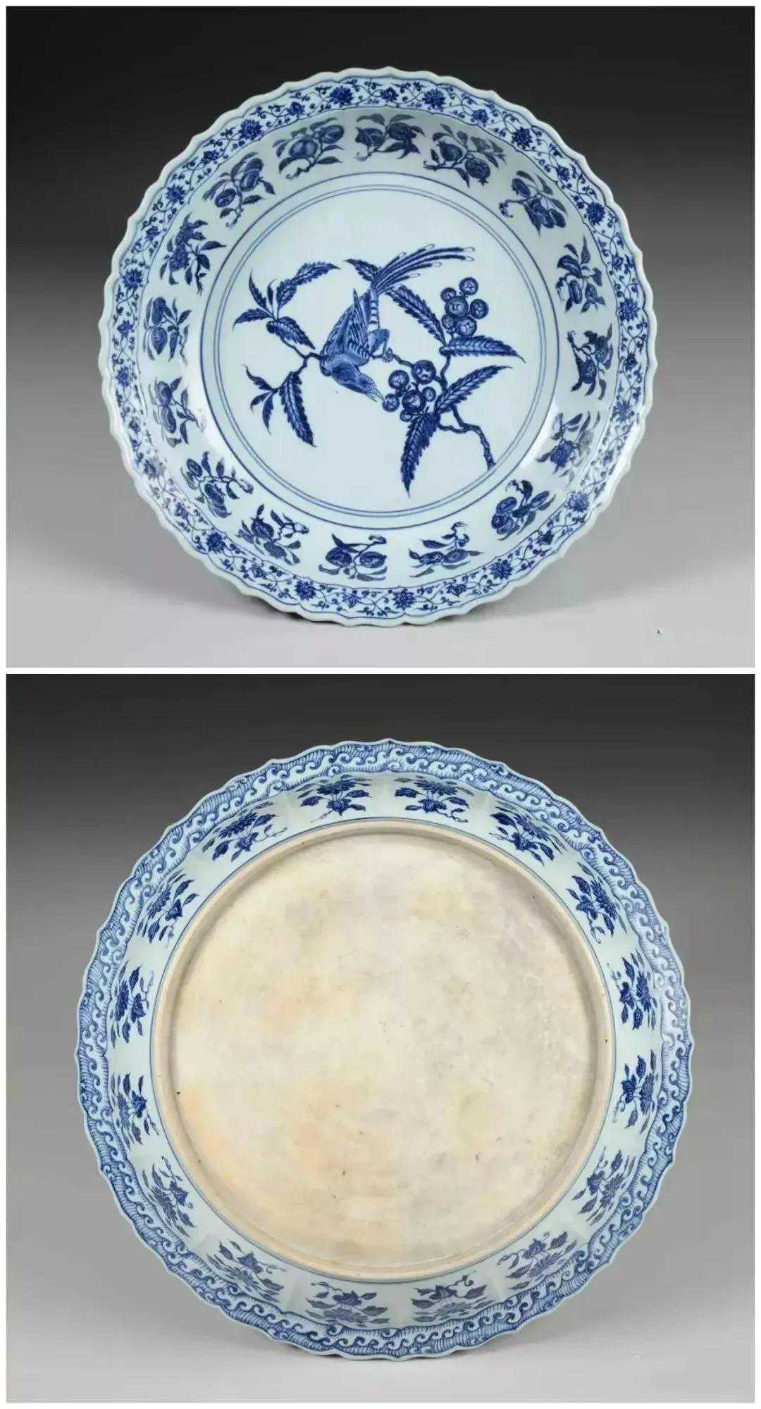 明永乐青花枇杷鸟纹盘