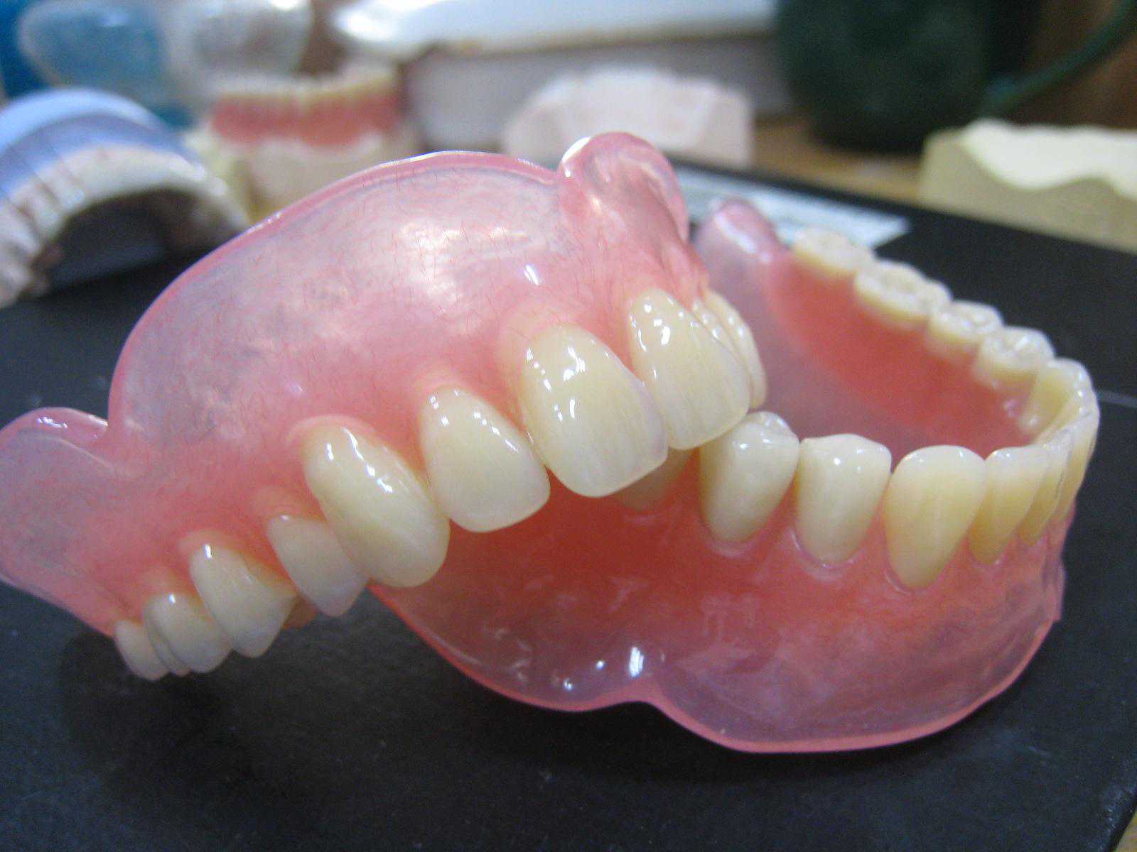 因为基托制作的材料不同,常见的全口义齿一般也分为: