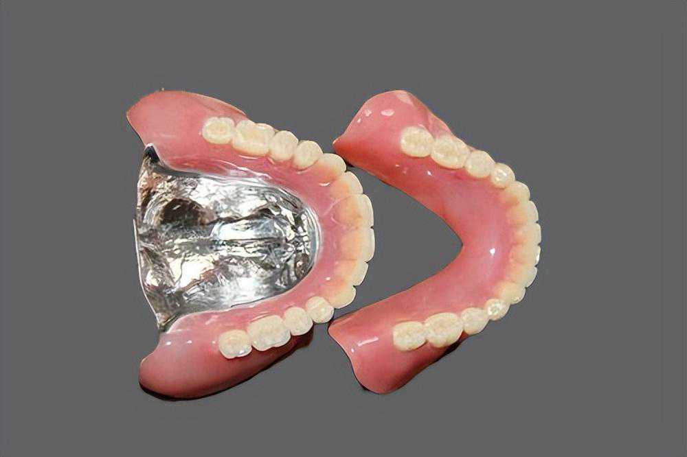 ③金属塑料结合牙。这种就是金属牙和树脂牙的结合,经常展露的前牙部分用树脂牙,经常咀嚼的大牙部分用金属牙。