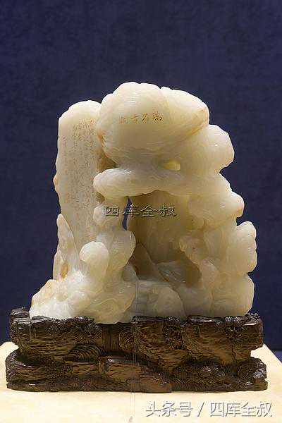 青玉乾隆刻诗瑞石古洞山子,充分运用玉雕工艺中的浮雕、圆雕等传统技法,在构图上运用国画的写意、线描的写实,以及透视技巧,使其层次分明,章法合理,充分展现了古洞的风采,崖壁之上刻有乾隆御制诗。整体细腻生动,主题突出,具有完美和谐的视觉效果。