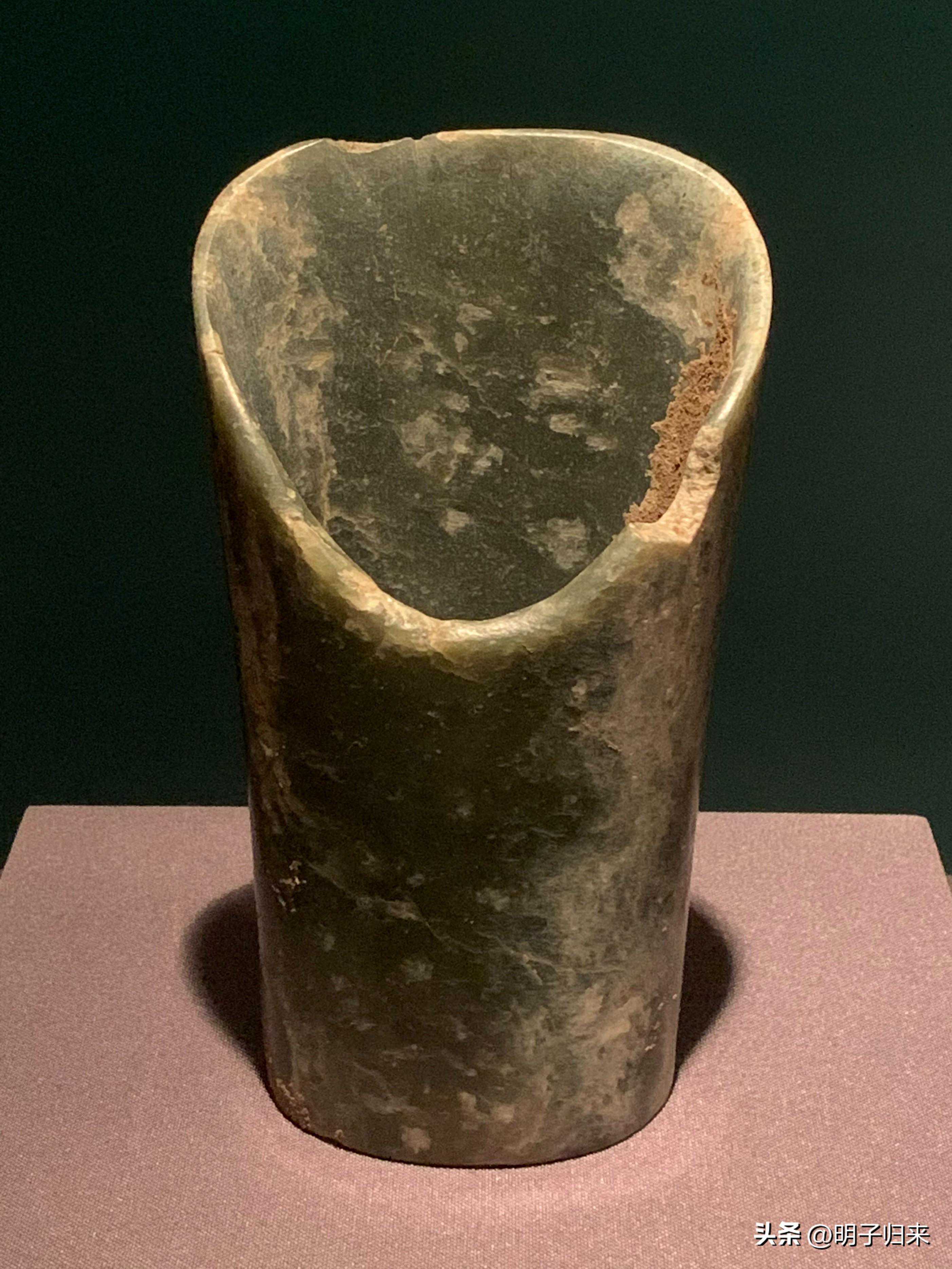 玉斜口筒形器,新石器时代红山文化晚期,朝阳市牛河梁遗址出土,辽宁文物考古研究院藏