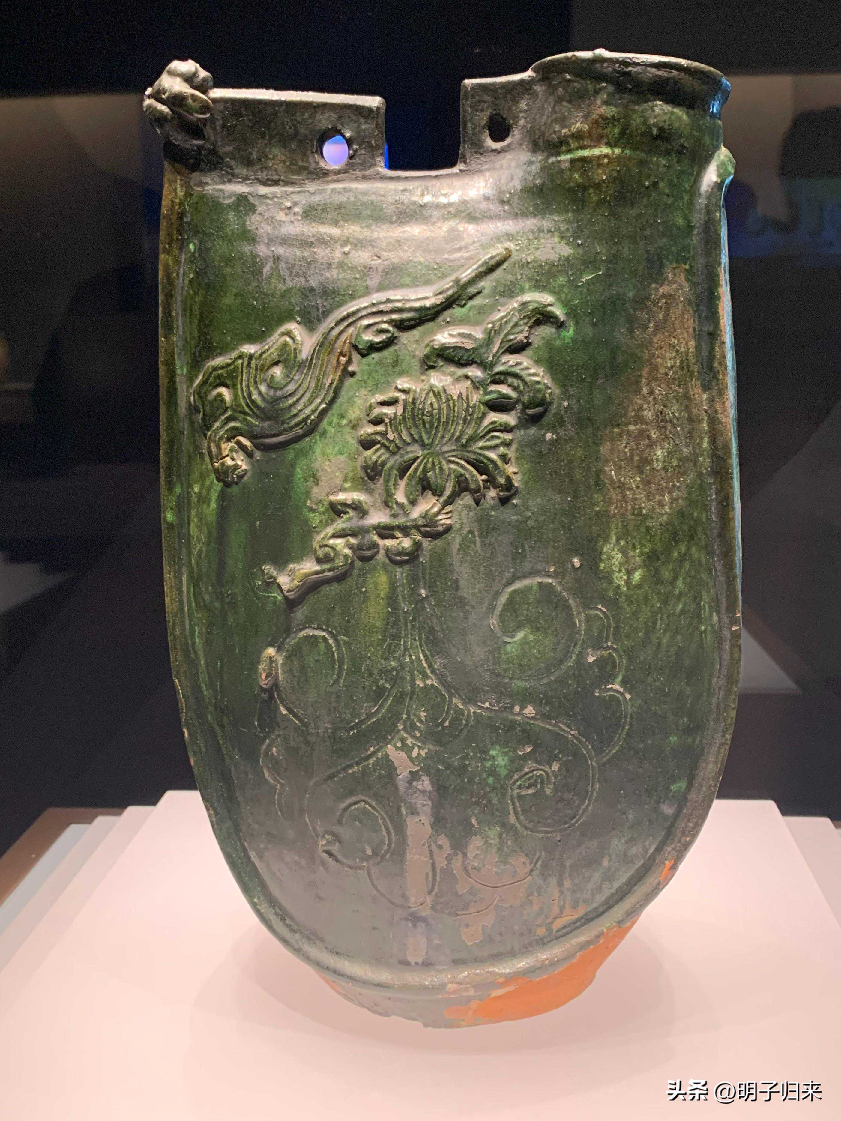 辽绿釉单孔鸡冠壶(皮囊形为契丹经典造型之一)