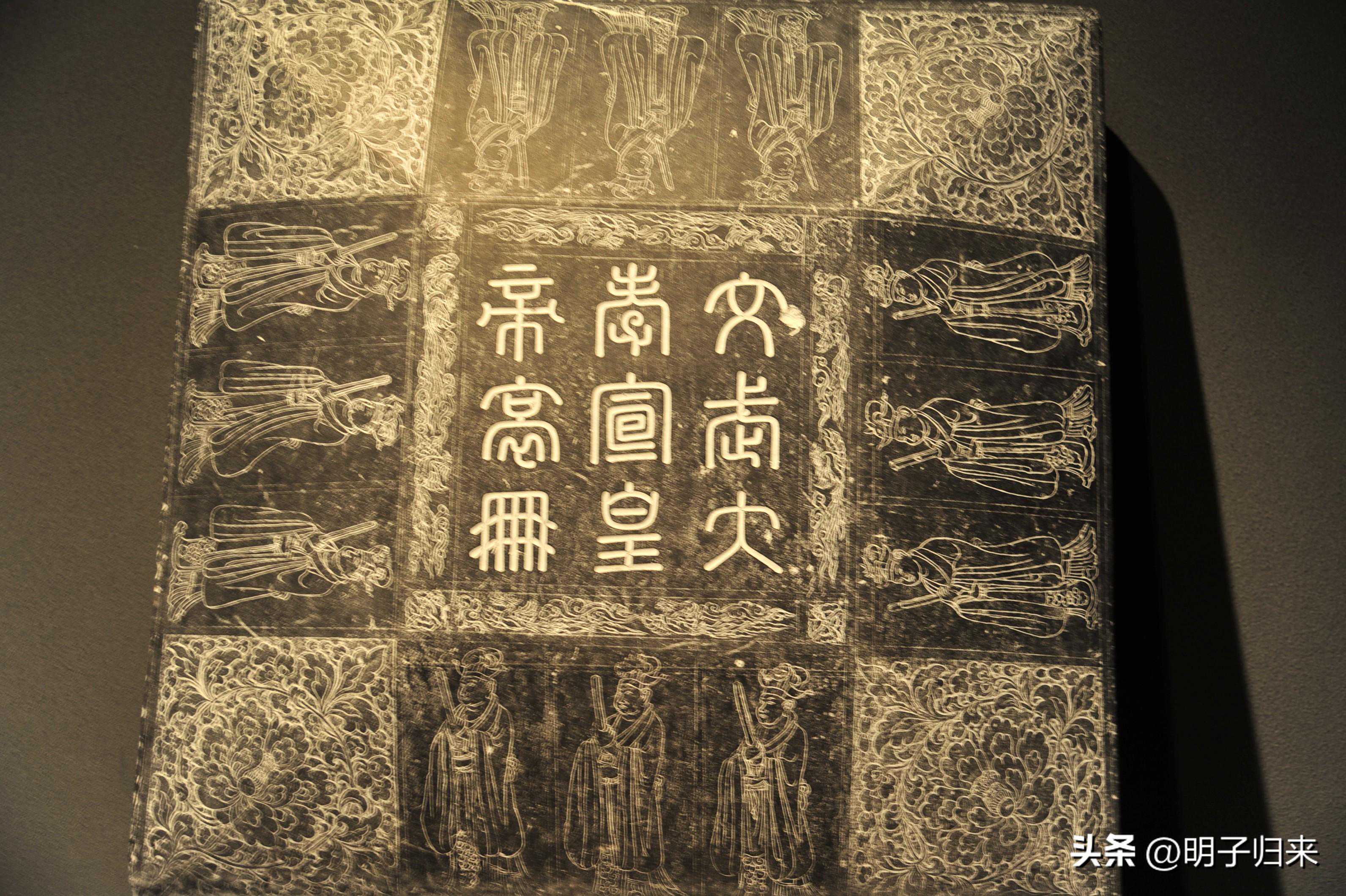 辽圣宗耶律隆绪是在汉地相当有名的萧太后萧绰之子,享年61岁,在位49年,葬庆陵(今内蒙古巴林右旗白塔子北)。正是在他任内,屡败宋师,约盟澶渊,并整顿吏治,任贤去邪,辽王朝达鼎盛。他汉文化修养颇高,晓音律,精绘画,通道、佛二教。庆陵三陵出土哀册15方,上为覆斗式,下为仰斗式,分册盖、册石两部分,契丹文、汉文对照;每石重1.5吨。其侧面有线雕纹饰,端庄飘逸精美异常。