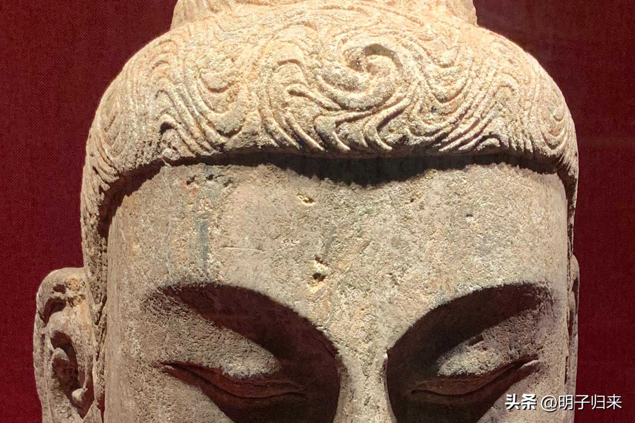 隋石雕佛头(石灰岩,局部)