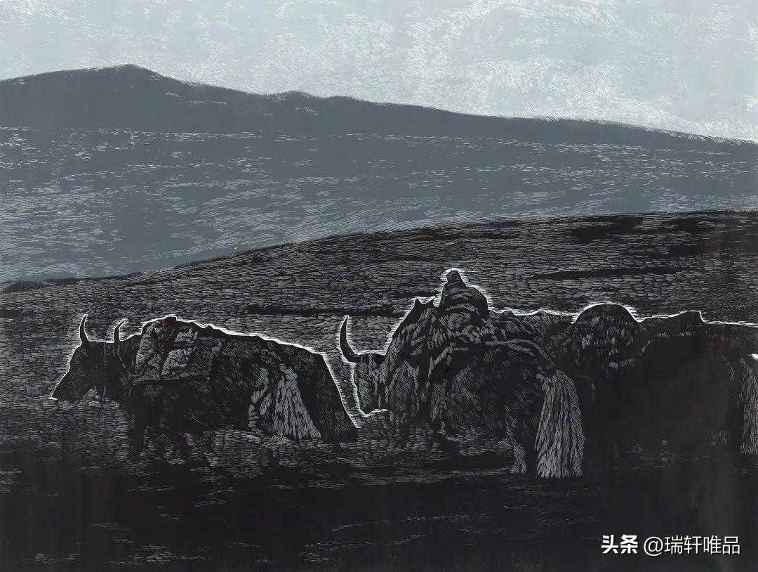 程琳皓阿尼玛卿山下缝毛毡120cm×90cm版画