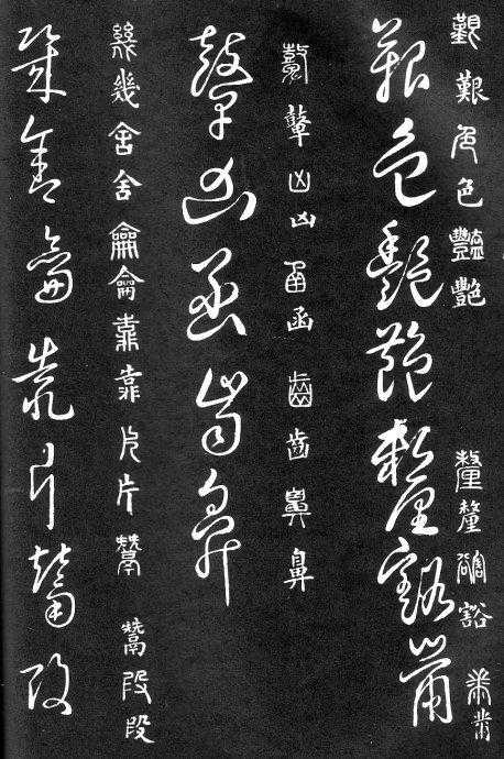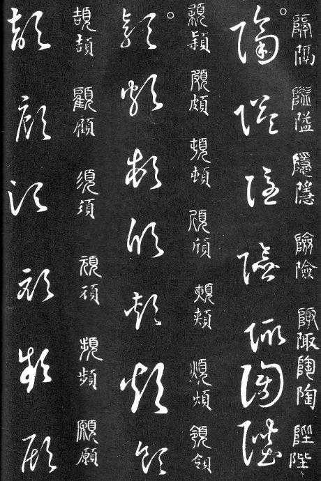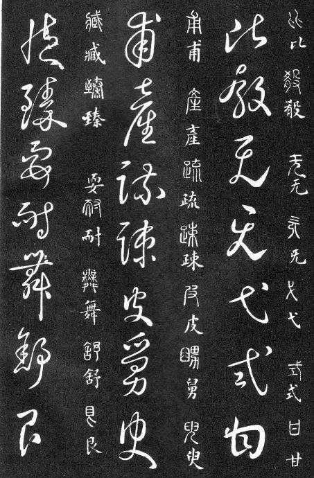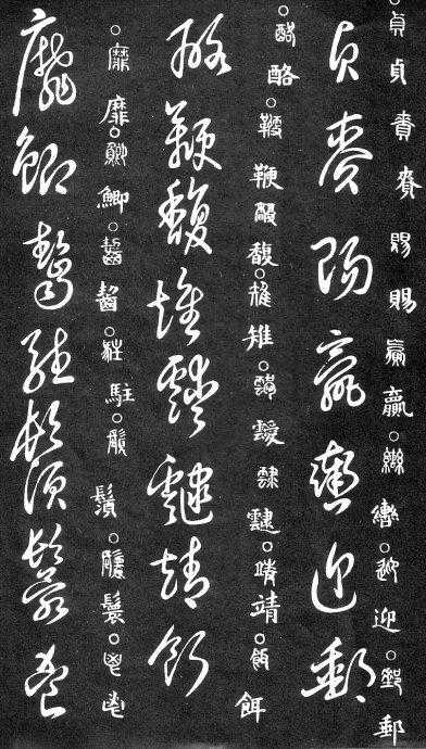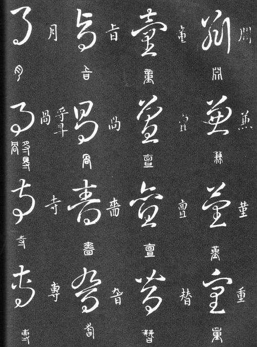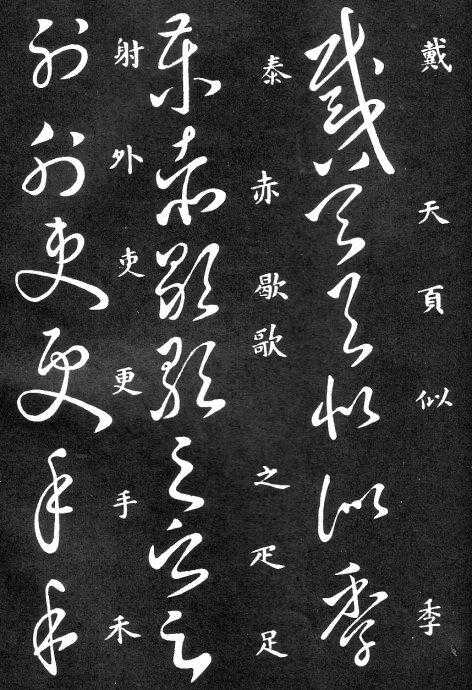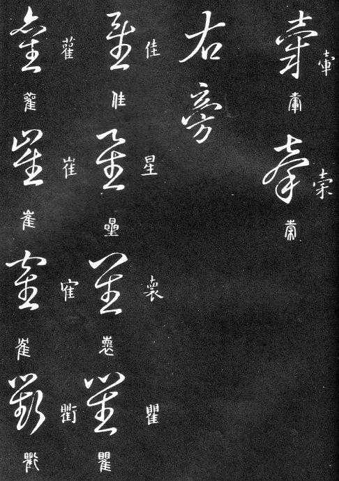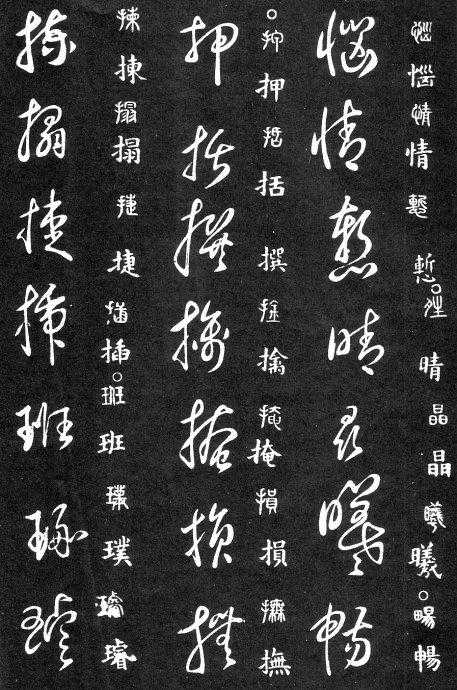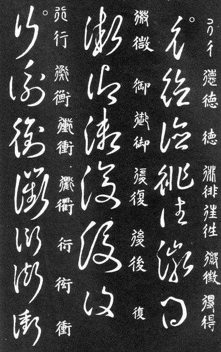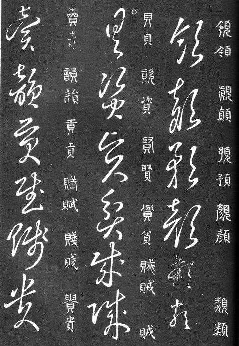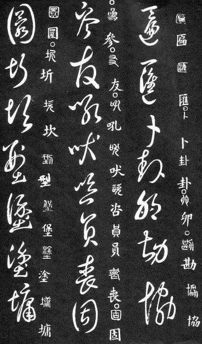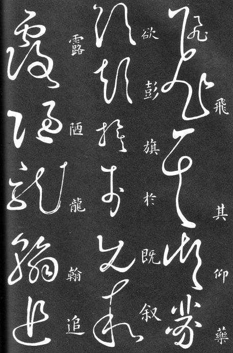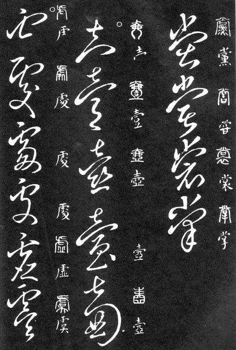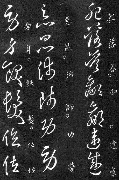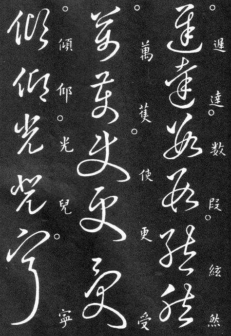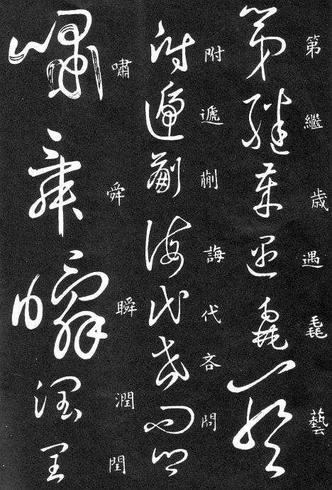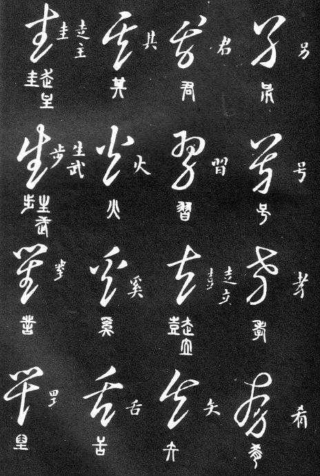 到唐朝时,草书成为一种书法艺术,因此演变成为“狂草”,作为传递信息工具的功能已经减弱,成为一种艺术作品,讲究间架、纸的黑白布置,是否让人能认清写的是什么已经不重要了。在狂草中,有“词联”符号,就是把两个字(常见词组)写成一个符号。由于当时书写多是从上到下地竖行书写,词联符号的设计也类似。“顿首”“涅盘”等都有草书词联符号。