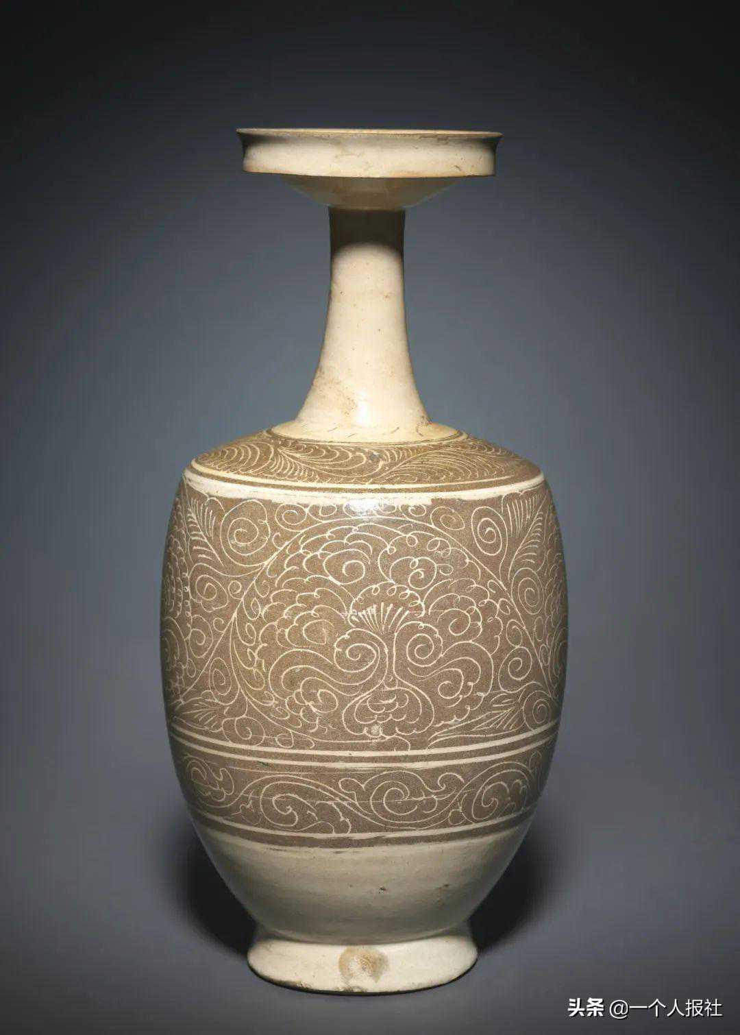 北宋磁州窑白釉绘花盘口瓶